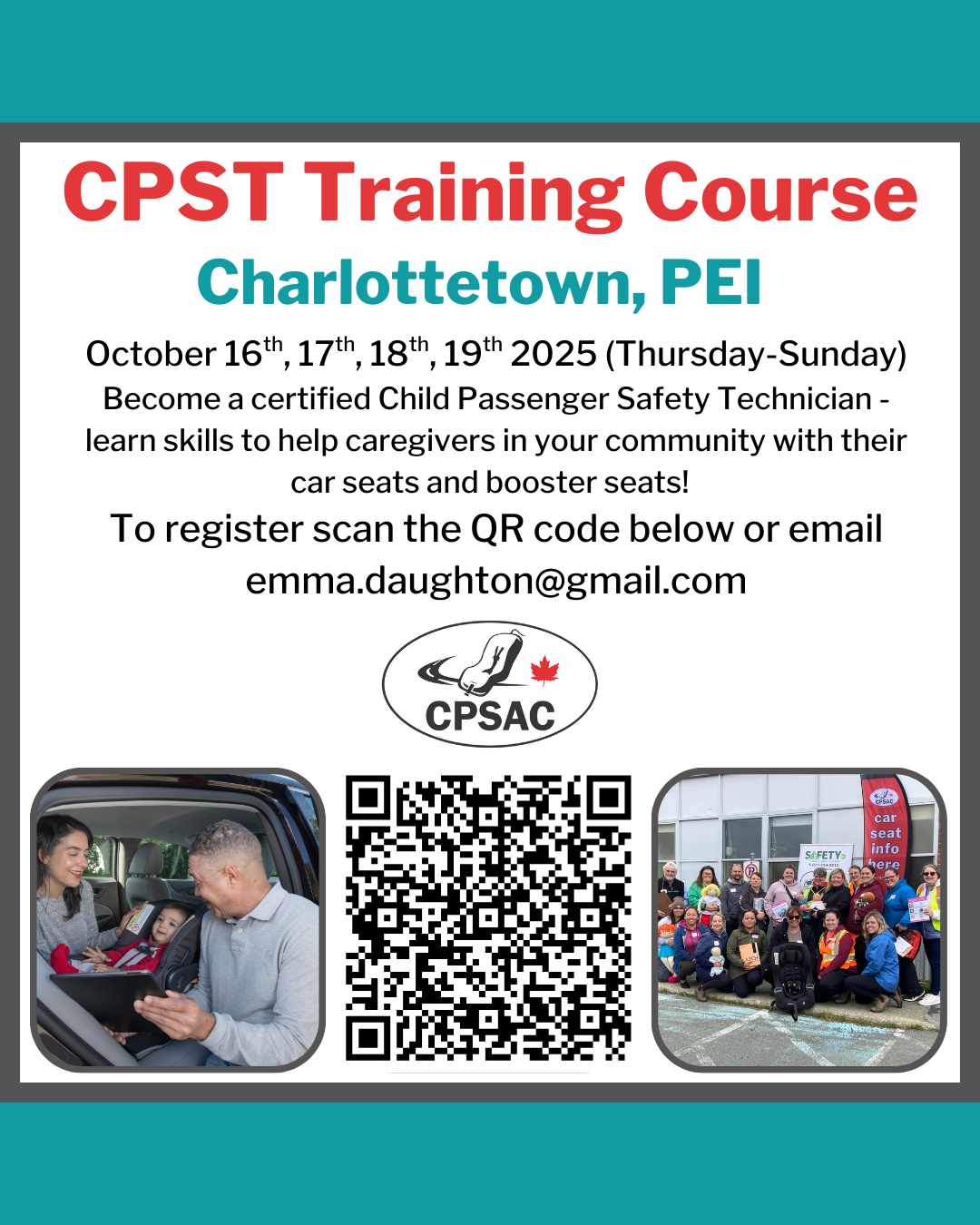 The Child Passenger Safety Technician (CPST) training program is a nationally-recognized, standardized, professional training and certification program provided by instructors in communities throughout the country. Our training program provides course participants with the widest range of information and knowledge available in Canada on child passenger safety. This includes best practice recommendations, car seat and booster seat installation and use, and how to support caregivers so they can safely transport children in their care. The training will prepare you to use your technical and practical skills to help caregivers at clinic events, private seat checks, workshops, community events, or at your job.