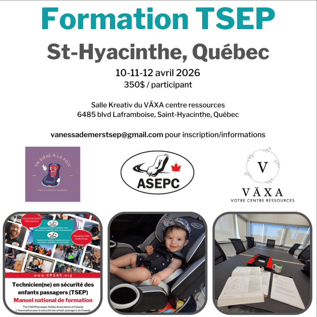 This fee includes certification with the Child Passenger Safety Association of Canada for 3 years, a printed copy of the manual and all supplies.